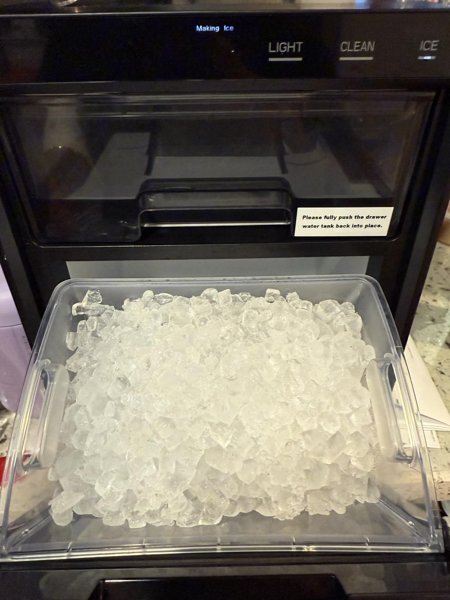 We’ve had this ice maker for a little over one month. It has worked flawlessly and keeps enough ice prepared for 4 of us. We keep bottled water in the refrigerator for use in the machine. The ice is pellet size and soft, perfect for chilling all types of drinks. We rinse the ice and water compartments once a week as recommended. Time will tell about it’s durability, but so far it has exceeded our expectations.